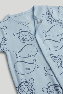 delicate ocean character prints decorate this all-in-one cotton outfit, which is perfect for baby's first days and nights. full popper fastening makes dressing and nappy changes easier for you.