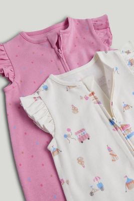 filled with carnival colour and all the fun of the fair, these cool and comfy cotton outfits are ideal for both day and night wear. two-way zip fastening makes dressing and nappy changes easy.