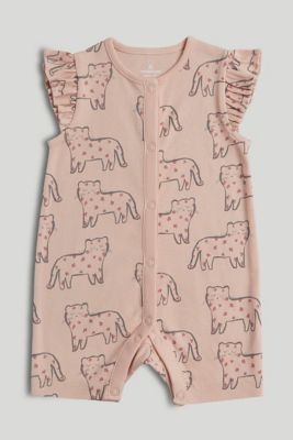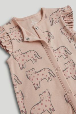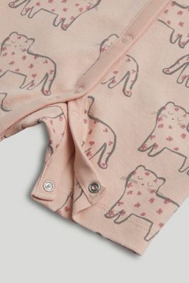 fun little leopard character prints decorate this all-in-one cotton outfit, which is perfect for baby's first days and nights. full popper fastening makes dressing and nappy changes easier for you.