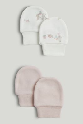 Two pairs of baby mittens made with super soft cotton. Part of our 'my first' collection for newborns, they're gentle on skin, will keep little hands cosy, and help prevent accidental scratches.