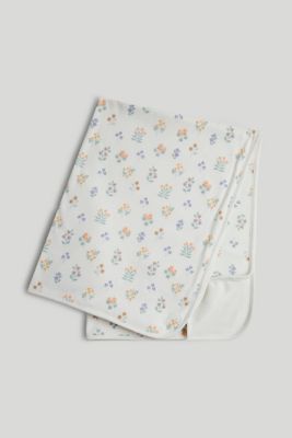 This pure cotton shawl is ready to wrap your little one in softness. Decorated with a delicate flower print, it can also be used as a cosy blanket.